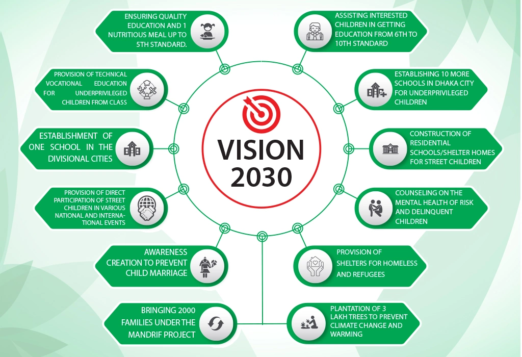 5. Establishment of one school in the divisional cities: By 2030, one school will be established in all the divisional areas where there are street children and underprivileged children, i.e., one school in each divisional city of the country.